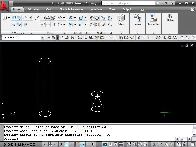 6. Lukiskan satu kon di atas objek, radius 3.5 dan tinggi 10