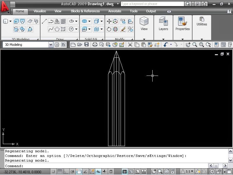8. pindahkan kon ke dalam objek panjang (batang pensel) dan dapatkan objek seperti rajah menggunakan icon subtract