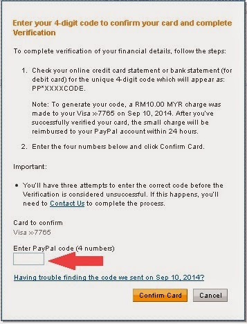 11.2 Di sini akaun anda akan ditolak RM10 dan akan dimasukkan semula dalam akaun PayPal. 4-digit code akan dihantar ke akaun bank anda di bahagian debit. ini contoh jika menggunakan maybank2u.com.my